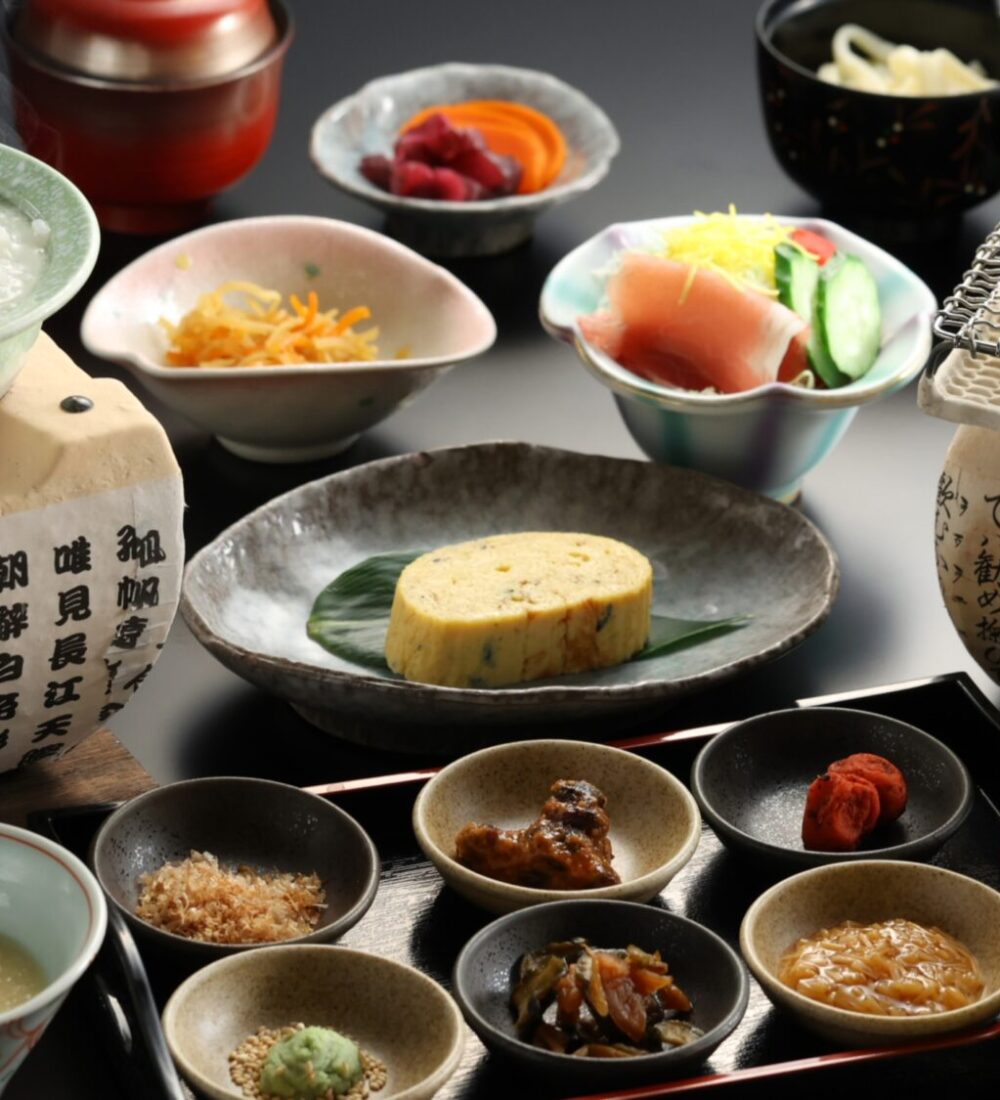 夕食は、信州産の美しい国産牛を主役に、旬の恵みをふんだんに盛り込んだ会席料理。繊細で彩り豊かな一皿一皿が旅の時間を華やかに彩ります。自然豊かな土地で育った食材が織りなす味わいは、心まで満たされる贅沢なひととき。朝食には、信州の幸を取り入れた滋味豊かな和食膳をご用意。温泉で癒された体を、美食でさらに満たす“信州ならではの味覚旅”をぜひご堪能ください。